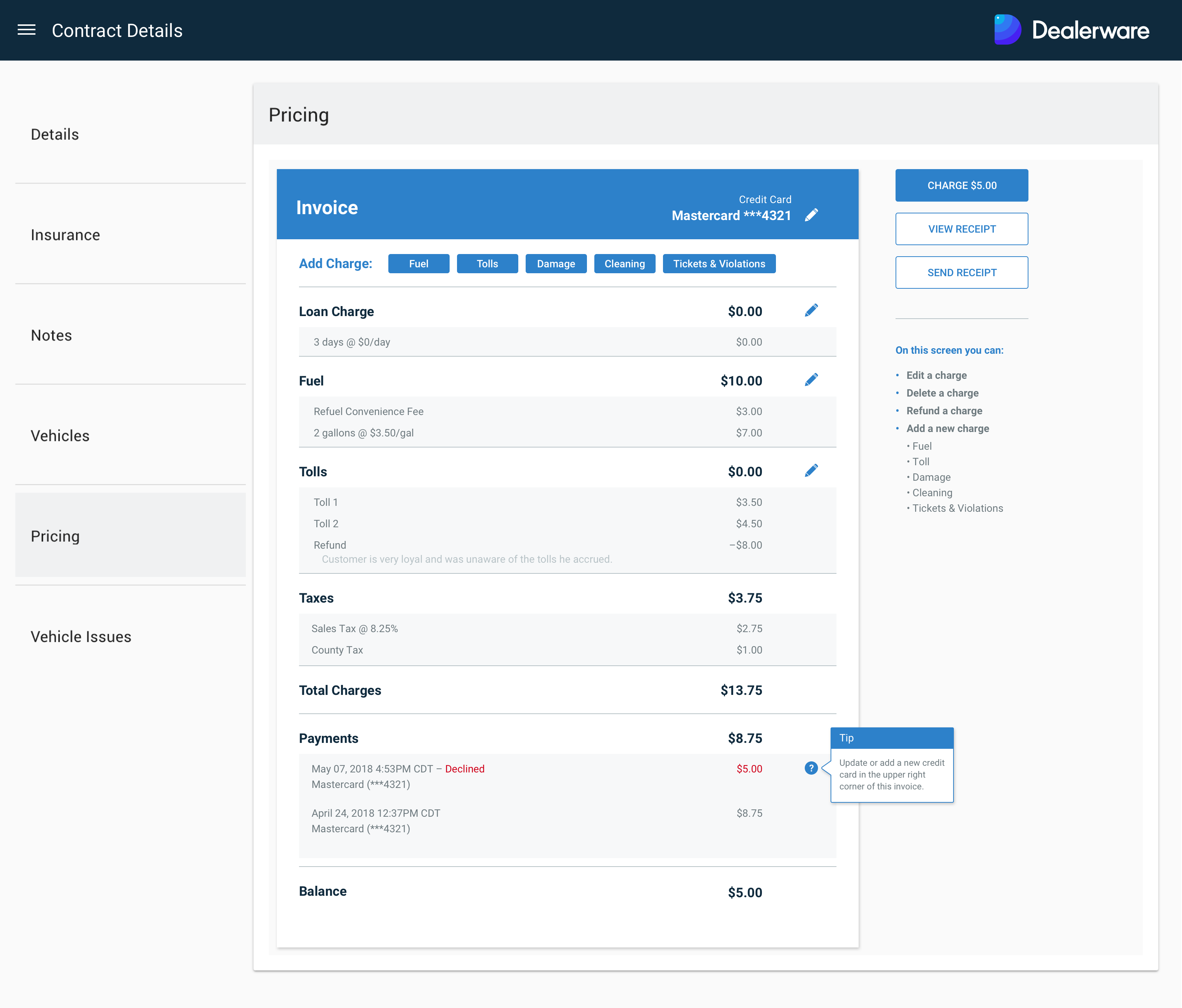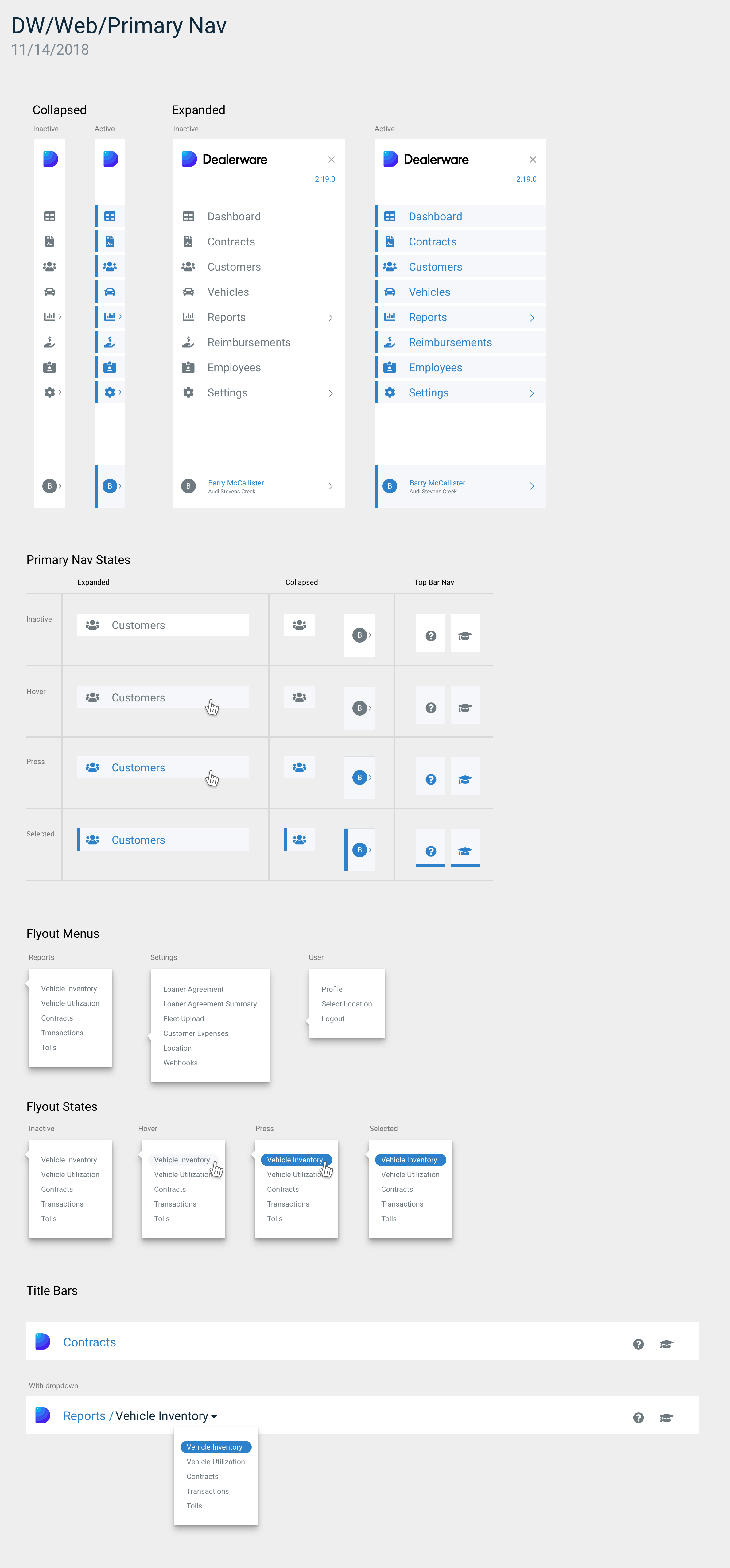 At Silvercar, I was initially hired to work on the Dealerware SAAS product consisting of a responsive web app and native mobile apps which streamline courtesy vehicle fleet management at automotive dealerships. I worked directly with the core product and development team to scope, prioritize, and address a multitude of feature requests and core UX pain points captured by the customer success team. My deliverables included customer journey maps, flow diagrams, wireframes, and low and high fidelity prototypes.
